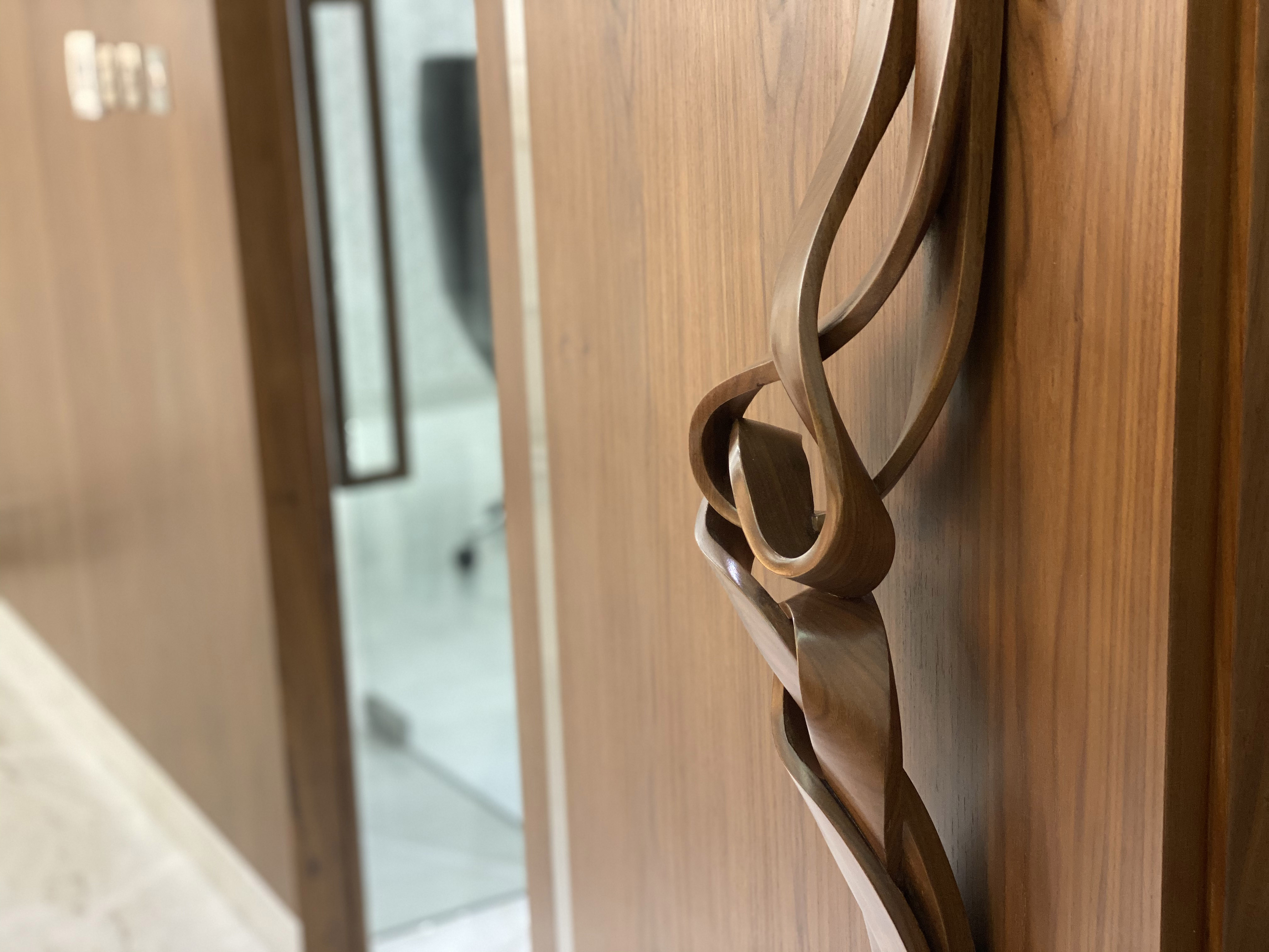Intricately carved from solid hardwood — every door we make is a singular work of art, designed from scratch and built to endure for generations.
