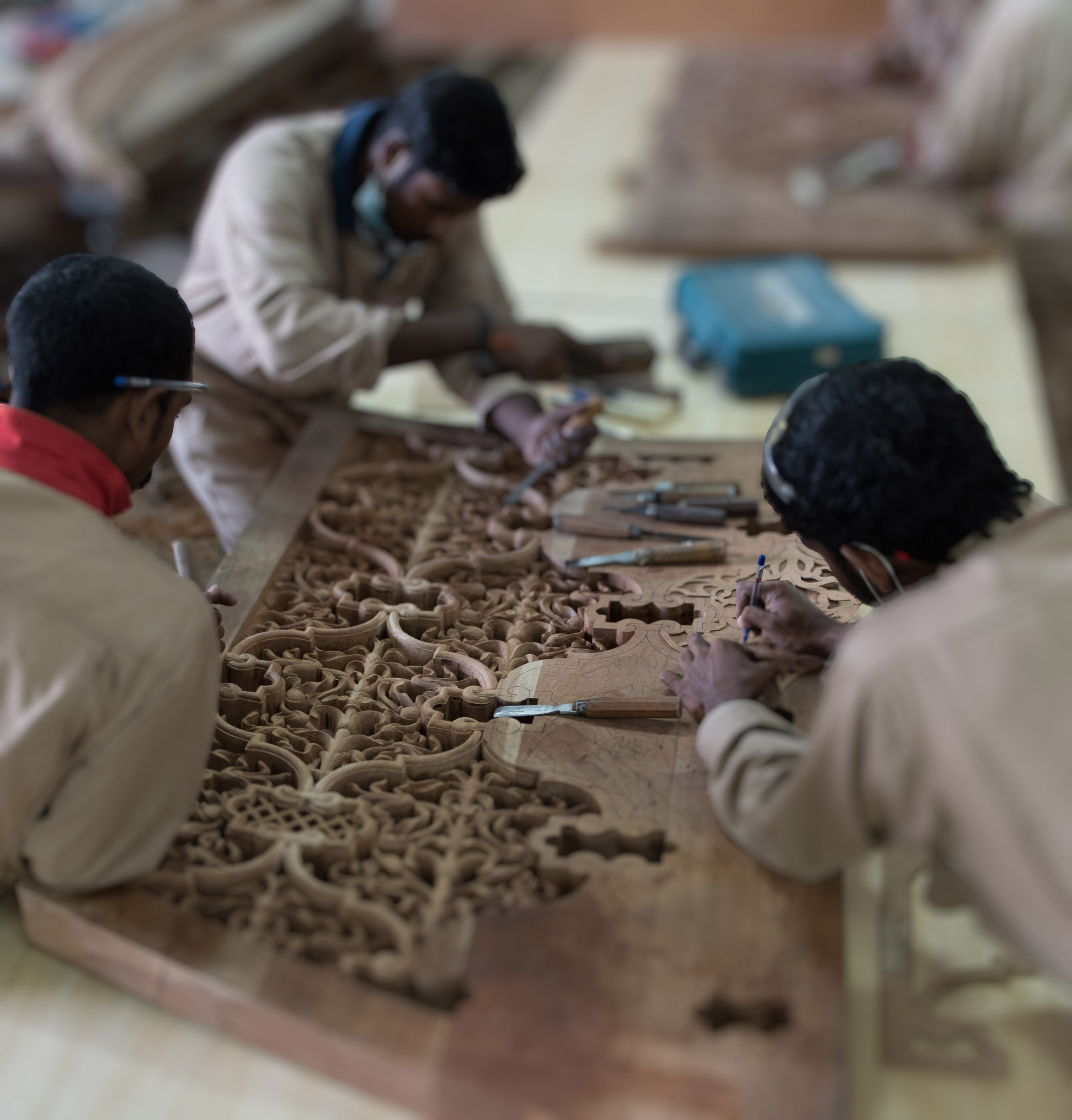 Everything we make is designed from a blank sheet and built by hand. From a single carved door to a complete palace interior, we bring the same obsession to every commission.